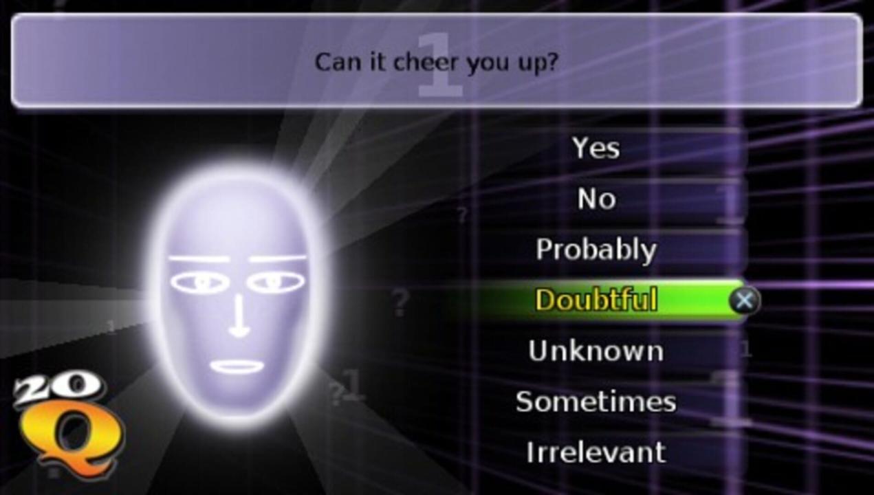A guessing game in which the "20Q" A.I. will try to read your mind by asking a few simple questions. The object you think of should be something that most people would know about, but not a proper noun or a specific person, place, or thing.