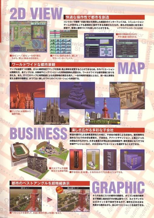 Released in December 1996 in Japan for Windows 95, this was the first A-Train game to use 3D graphics with a PowerVR graphics accelerator.
