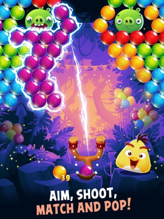 Let the bubbles fly in a charming bubble shooter downloaded by more than 45 MILLION players! Match and pop colorful bubbles in over 2000 captivating levels, and participate in special events to earn awesome rewards! Join Stella, Red, Chuck, Bomb, and the rest of the Angry Birds flock in a bubble shooting adventure bursting with a nearly endless supply of challenges! Grab your trusty slingshot and shoot those bubbles to drop the pigs and rescue the impossibly adorable Hatchlings. With special guests and events popping up all the time, there’s always a fun new challenge to take on. Of course accomplishments come with their fare share of rewards!