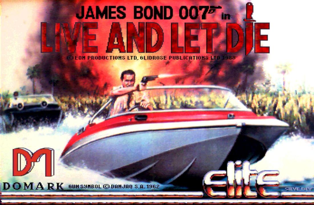 James Bond: Live And Let Die is a racing video game loosely based on the 1973 James Bond film of the same name where James Bond navigates the stages in a modified speedboat. The game was released by Domark for the Amiga, Atari ST, Amstrad CPC, Commodore 64, MS-DOS, and ZX Spectrum in 1988. Developers Elite Systems International Ltd began writing the game without knowing it would ultimately become a James Bond title. The game was swiftly branded with the usual 007 trappings and titled Live And Let Die as publishers Domark spotted the obvious connection with the film's speedboat chase. Elite also released the game Aquablast (the original title) to the market without any Bond branding.