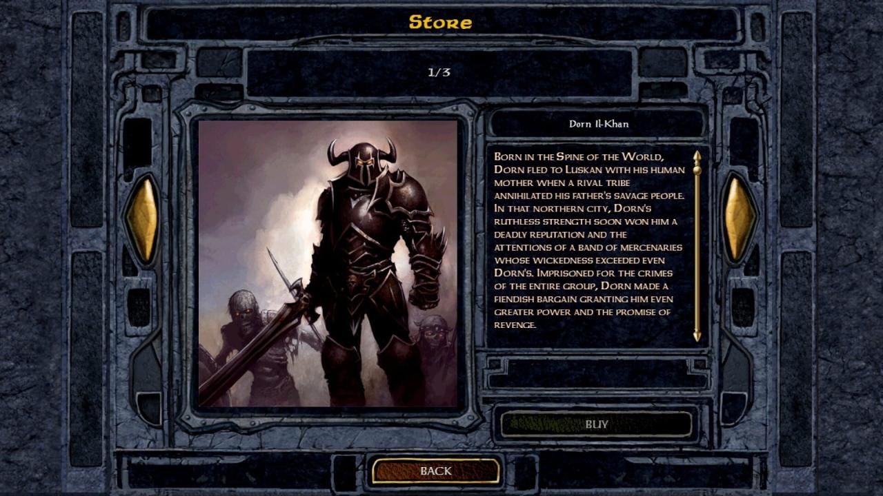 Running on an upgraded and improved version of the Infinity Engine, Baldur's Gate: Enhanced Edition includes the entire Baldur's Gate adventure, the Tales of the Sword Coast expansion pack, and never-before-seen content including a new adventure and three new party members: the Calishite monk Rasaad yn Bashir, Neera the wild mage, and Dorn Il-Khan, the evil blackguard.