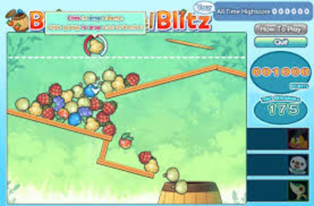 The player has 3 minutes to complete 12 stages, each of which involves dropping berries into crates.