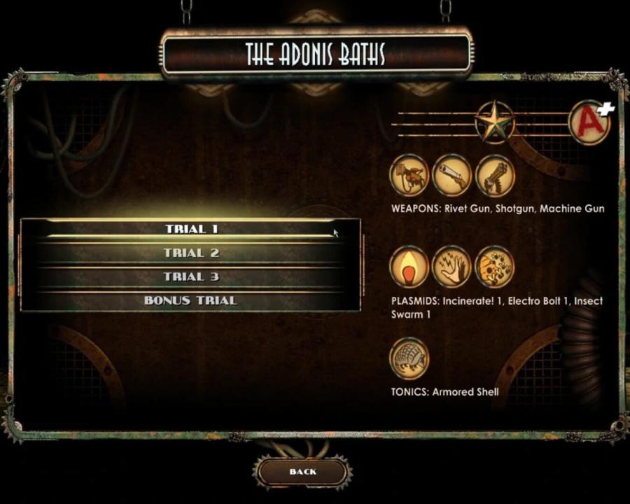 The Protector Trials is the third DLC for BioShock 2 and the first to expand the singleplayer mode. Players step into the role of a Big Daddy who must fight off splicers while his Little Sister harvests ADAM from corpses. It offers six new maps with three difficulty levels, new unlockables and seven new achievements/trophies. There are three new weapons and Plasmid load-outs plus a fourth bonus load-out received when all previous ones are completed.