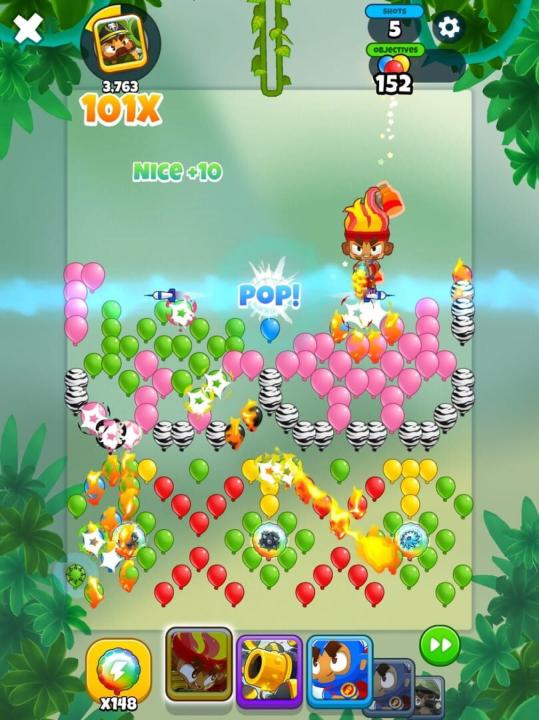 Those Bloons may look cute and colorful but they've made a mess of Monkey Town, and it's up to you to pop them all and set things right! Aim your friendly Monkeys then watch them jump right into the puzzle and use their signature abilities to pop as many Bloons as possible. Merge shots into powerful Mega Monkeys and unlock bonus Hero Monkey shots to help you win! Each victory helps you rebuild the beautiful village scenes that the Bloons disrupted. Place buildings, characters, pets, decorations, and a variety of other interactive, animating objects to make each Monkey Town your own creation.