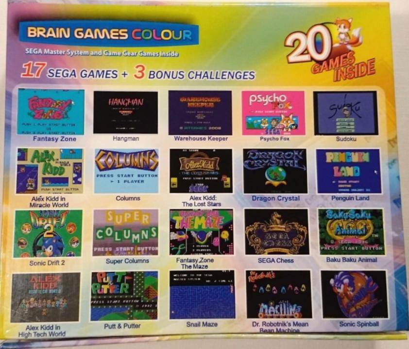 The Brain Games Colour, is an officially licensed handheld console released by AtGames. It contains 17 Sega Master System and Sega Game Gear games, and three "bonus" games.