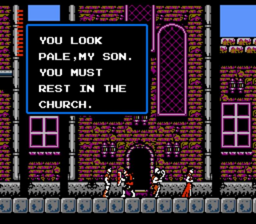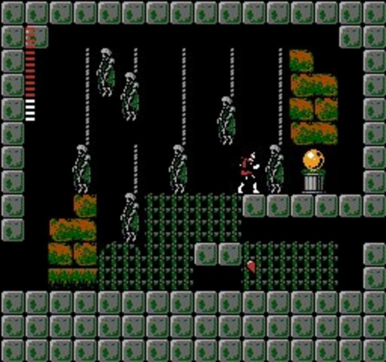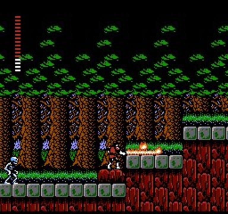 Castlevania was a cakewalk compared to this bloody curse. You thought you had the Prince of Darkness defanged - eh, Simon Belmont? Well think again, 'cause according to a damsel in distress, evil Count Dracula has left a horrifying curse in his wake. And the only hope you have of ending the terror is to destroy his missing body parts! Talk about your frightening quest, searching a maze of mansions, graveyards and dark, eerie forests - each guarded by man-eating werewolves, fire-throwing zombies and other devilish demons. Your grim chances are kept alive in Transylvania, where cowardly villagers offer clues to the whereabouts of Dracula's remains. And where you'll purchase magic weapons, including silver knives and flame whips. But beware the night. For when the sun disappears, Dracula's curse grows deadlier. And your chances grow dimmer and dimmer.