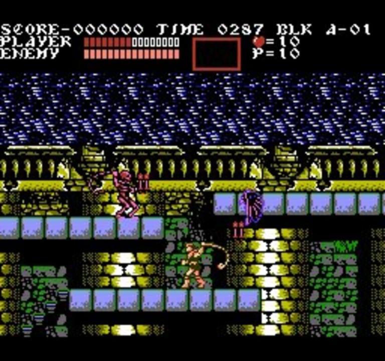 Led by the immortal Count Dracula, the greatest army of evil ever assembled is poised to bury mankind in a Tomb of Terror. Destroying this legion of Swamp Dragons, Slasher Skeletons and Forces of the Undead will be the supreme challenge for the mightiest of warriors. Your place in history is 100 years before Simon Belmont's birth. Dracula is young at heart, and it will take more than a stake to penetrate his evil. Luckily, you command the role of Trevor - Simon's forefather and the origin of the Belmont Warlord Chromosomes. Trevor has a power never before seen by human eyes - the power to transform into three different spirits: Grant DaNasty, the ferocious Ghost Pirate. Sypha, the Mystic Warlord. And Alucard, Dracula's forgotten son. You must perfectly time Trevor's body transformations to match up his different fighting spirits against Ultimate Evils. Trevor also has the strength and wisdom to command the Battle Axe, Invisibility Potion and Mystic Whip. But the most important weapon Trevor has is your cunning to choose the correct Paths of Fate and your bravery to lead him past 17 possible levels of never-ending doom, including the Haunted Ship of Fools, the Sunken City of Poltergeists, the Clock Tower of Untimely Death and Curse Castle. Never before have so many dangers confronted you at one time. And if by some miracle you triumph, you'll no longer be a mere mortal. You'll be a legend who'll live forever!