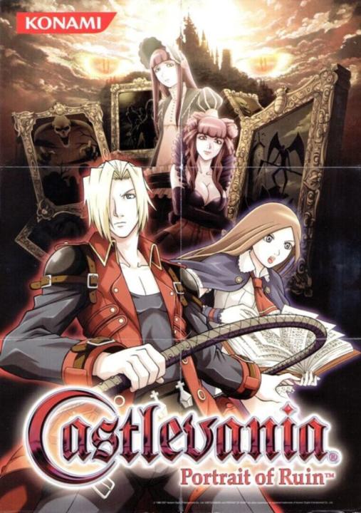 Castlevania: Portrait of Ruin is a side-scrolling action RPG where you switch between two hunters, Jonathan Morris and Charlotte Aulin, to explore Dracula's castle and defeat the vampire Brauner. Set in 1944, Jonathan wields the Vampire Killer whip while Charlotte casts magic. You'll navigate eight painted worlds hidden within the castle, solve puzzles using each character's unique abilities, and acquire new skills and weapons. Your decisions determine which of multiple endings you receive.