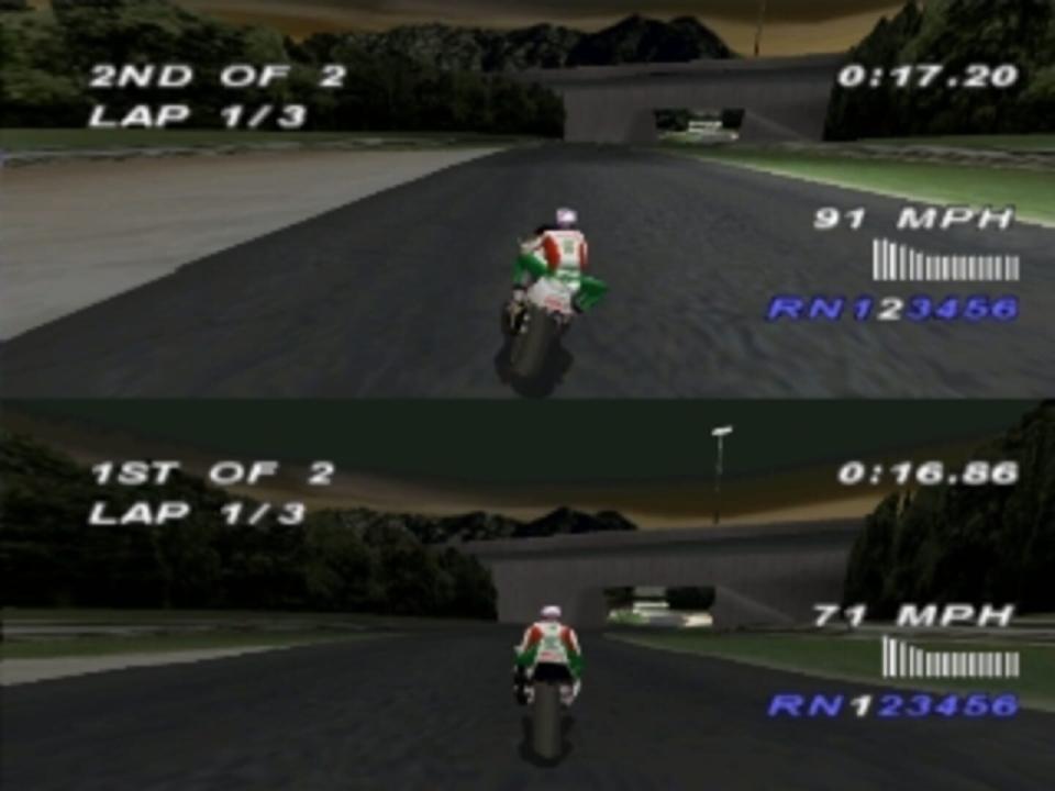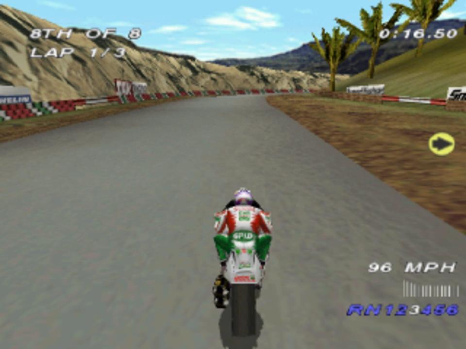 Castrol Honda Superbike Racing is a motorcycling game. The player can choose between four playing modes: practice session (just racing alone on a track), trainer session (following another bike to learn the ideal line), single race or championship (one season over all 14 courses). The two latter ones optionally also include a qualifying session. While there is only one bike (Honda RC 45). it is possible to change its setup (gearbox, front tire, rear tire, final drive, gears). Single races and championship can also be played with a second player in split-screen. The races include overall eight participants. Besides the eight difficulty levels and number of laps, the player can also enable/disable auto brake, help arrows, steering assist, wheelies, engine overheat, tire wear, loose rear wheel, penalties, bike damage and major damage. This game is in part based on Castrol Honda Superbike 2000.