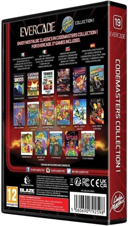 Introducing the Codemasters Collection 1 Cartridge for Evercade; 17 of the most renowned games in British gaming history including Sensible Soccer, Cannon Fodder, Linus Spacehead, and an unreleased title, Tennis All-Stars. Games Included: - Sensible Soccer - International Edition (Championship Soccer '94 in North America) - Cannon Fodder - Big Nose Freaks Out - Tennis All-Stars (released as Pete Sampras Tennis) - Mega-Lo-Mania - Big Nose the Caveman - Cosmic Spacehead - Psycho Pinball - Bee 52 - MiG 29 - Soviet Fighter - The Ultimate Stuntman - Super Skidmarks - Boomerang Kid - Linus Spacehead - CJ’s Elephant Antics - F-16 Renegade - Stunt Buggies