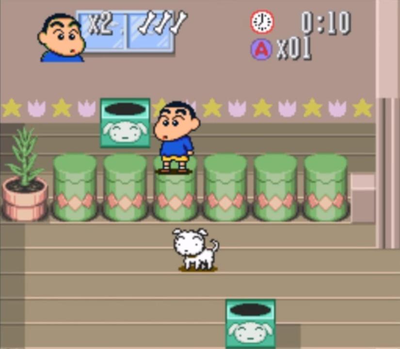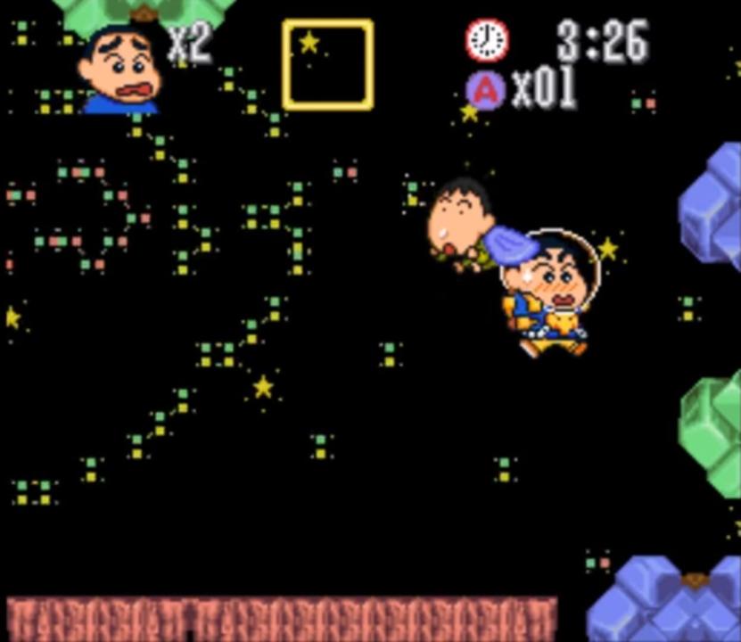 Action platformer released by Bandai for the Super Famicom in 1994 based on the scatological anime Crayon Shin-chan.