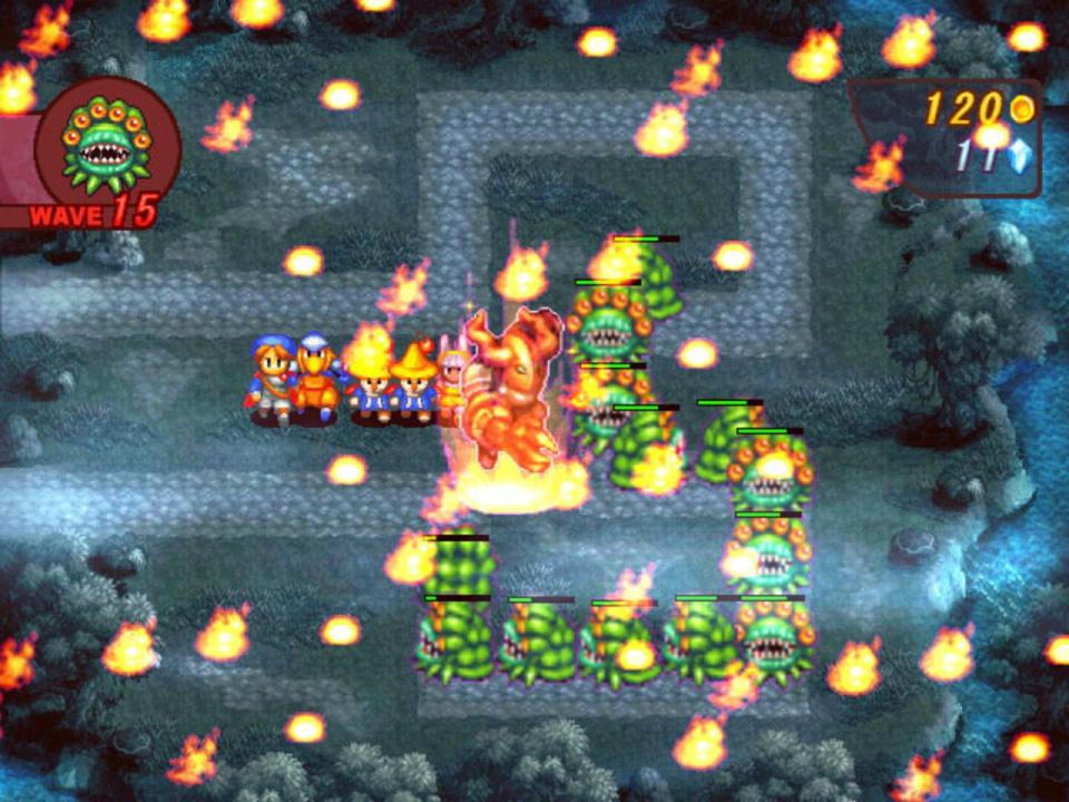 In a land ruled by might and magic, peace is ensured by the benevolent power of the crystals. In CRYSTAL DEFENDERS R1, you must deploy various units such as Soldiers and Black Mages to stop wave after wave of encroaching monsters from escaping the area with your party's crystals. There are many different types of units to choose from, some specializing in powerful short-range attacks, some wielding far-reaching magicks, and still others equipped with bows, enabling them to bring down aerial foes. Deploy units in strategic locations to take full advantage of their traits. Each time an enemy breaches your defenses and reaches a map's exit, your party will lose crystals. When all your crystals are gone, the game is over. CRYSTAL DEFENDERS R1 comes complete with a plethora of exciting stages, each varying in layout and difficulty. Can you defend them all without losing a single crystal?