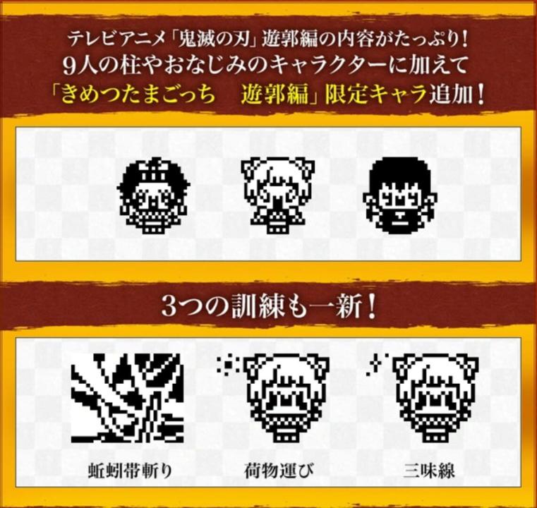 The Yukaku Edition, released in Japan in June 18th, 2022, is the third version of the Demon Slayer Tamagotchi. It features the standard version's roster plus the addition of Sumiko, Zenko, and Inoko, the courtesan disguises of Tanjiro, Zenitsu, and Inosuke.