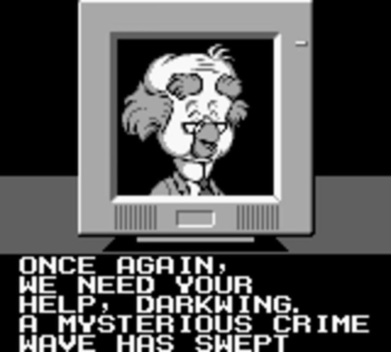 Darkwing Duck is a side-scrolling platform game featuring the titular character from the Disney television series. The gameplay is similar to Duck Tales, also resembling Mega Man games in many ways. Darkwing's default weapon is a gas gun; special adapters that modify its functions can be collected during exploration. By using his cape, Darkwing is able to deflect some of the enemy projectiles. Weapons can be changed via a sub-screen.