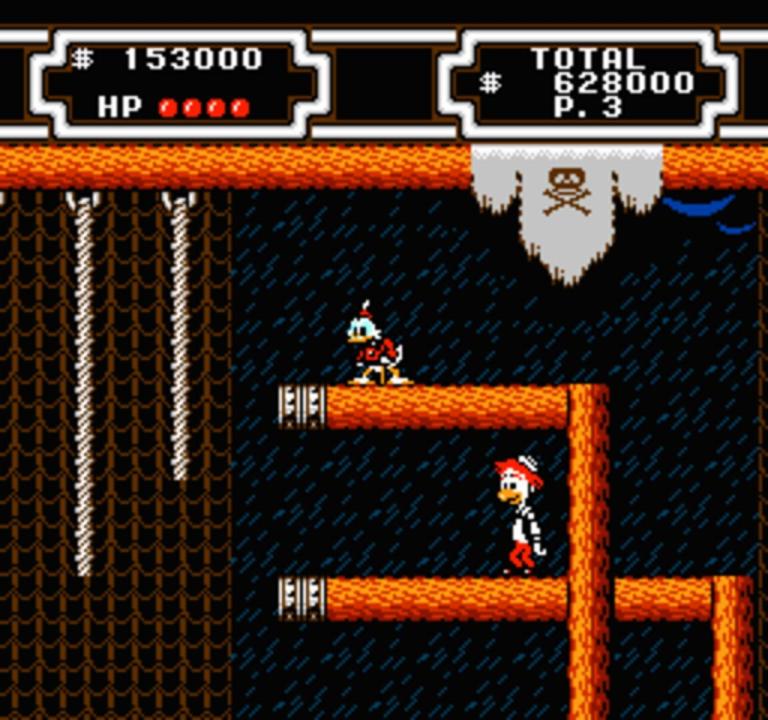 As the game opens, Huey runs to his uncle Scrooge McDuck with a torn piece of paper, which is a piece of a treasure map drawn by Fergus McDuck. Inspired to discover the hidden treasure left by Fergus, Scrooge starts an expedition to find the missing pieces, unaware that his archenemy Flintheart Glomgold is also after the lost treasure of McDuck. Scrooge travels to Niagara Falls, a pirate ship in the Bermuda Triangle, Mu, Egypt and Scotland. Each area has its own unique treasure that is guarded by a boss. After all five main stages are cleared, Webby is kidnapped by Glomgold and held for ransom on the pirate ship in the Bermuda Triangle. Scrooge arrives and gives Glomgold the treasures, only to discover that this "Glomgold" is actually a shapeshifting robot called the D-1000 programmed to destroy him. After the D-1000 is defeated, Glomgold sinks the ship and tries to take Scrooge and the treasures with it.