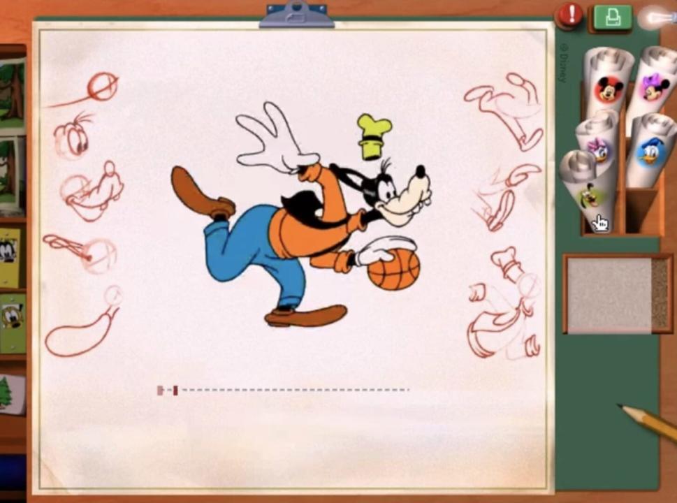 Disney’s Magic Artist Studio lets you draw, paint, and create animations with your favorite Disney characters. Create, animate, and print your images with tools and paints that burst onto your screen. Roses sprout from your canvas, and butterflies soar through 3-D paintings virtually dripping with color. Disney character images dance to disco, rock, classical, and island beats.