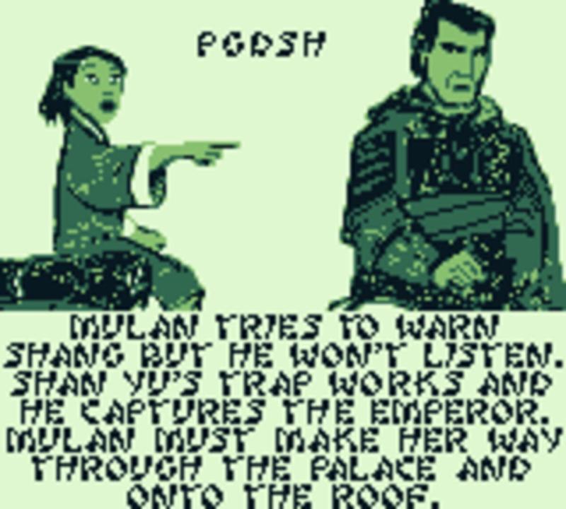 As Fa Mulan you will follow the storyline of the Disney animated movie starting from army training. You will progress through other scenes, like avoiding detection, saving Shang, sneaking past the Mongol army, getting through the palace and stopping Shan Yu. This is a scrolling game with some puzzle elements. You can throw things at enemies to stun them but this is not a shooter. Mostly, you are trying to make your way past an enemy to achieve your goal.