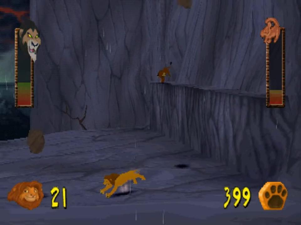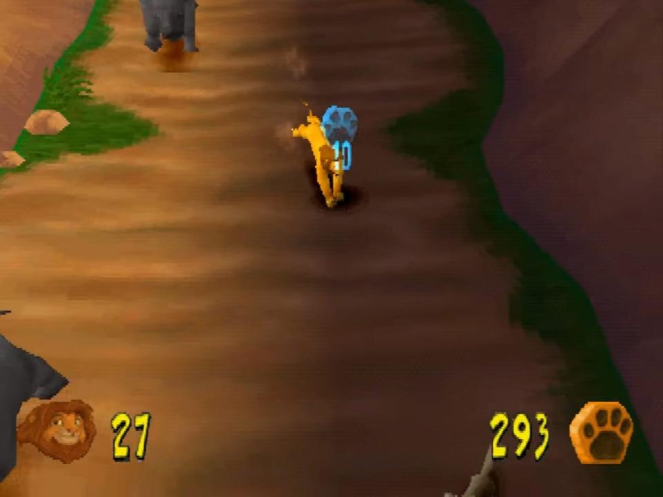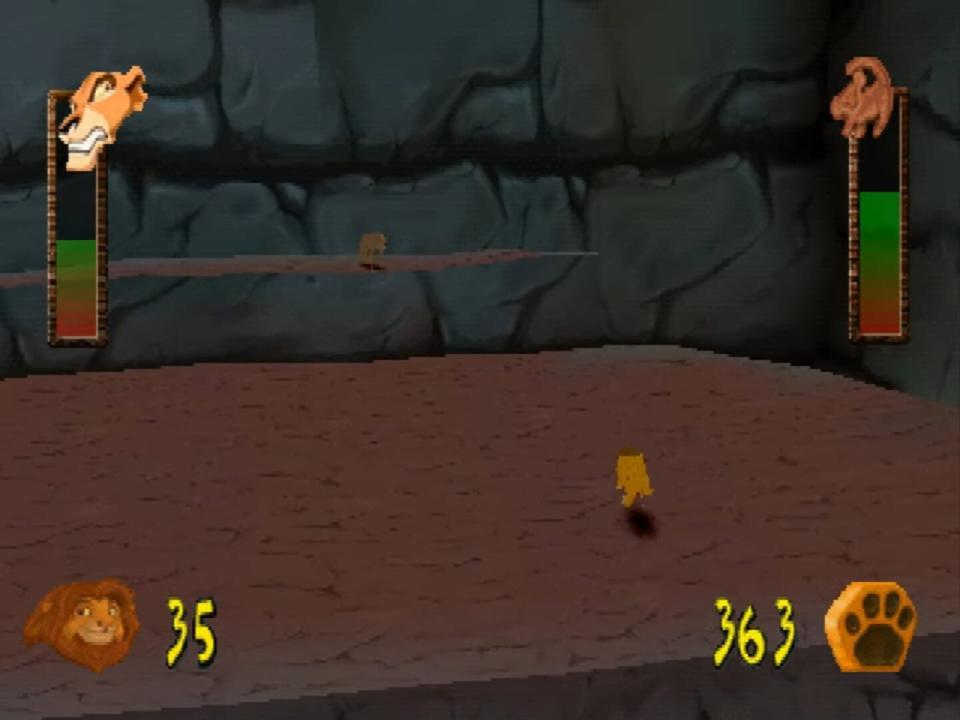 After his father is killed, the young lion prince Simba must travel through the jungle to find his life's path. Eventually, he will return home and claim his rightful place as the Lion King. On his journey, Simba must avoid such dangers of the jungles and plains as wildebeests and rhinos. When he encounters these enemies as a cub, his roar does little to scare them off. However, maturing into a majestic lion deepens his voice and makes the growl useful as a weapon. As he explores the nine levels, Simba will be able to collect a wide variety of items that will open several bonuses that include puzzles, mini-games, and movies. While the film was animated in 2D, Simba and his world are rendered in three dimensions, and the plot unfolds in cinematic sequences between each level. You've got to help Simba take his rightful place in DISNEY'S THE LION KING: Simba's Mighty Adventure.