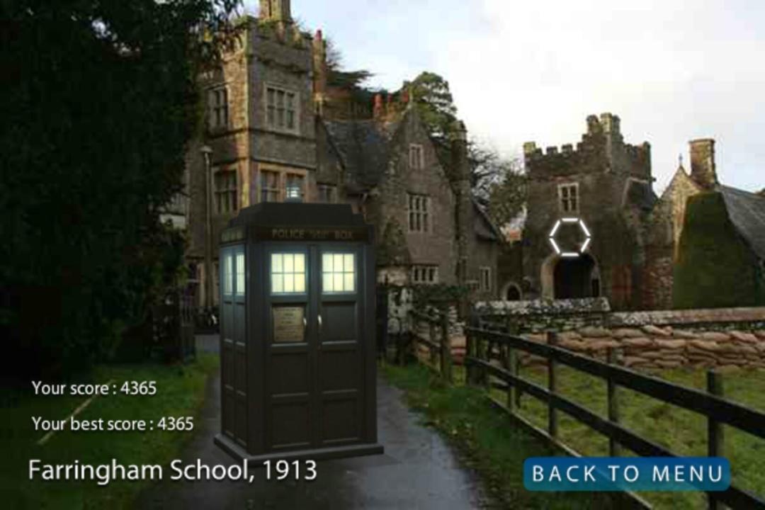 Fly the TARDIS. How far can you travel in time? Control the TARDIS as you travel through the time vortex. Collect blue energy particles to temporarily fuel the TARDIS and avoid red particles that will disrupt the fuel cells. If you lose all your energy, the TARDIS will fall out of the vortex and rematerialise at a location in space and time.