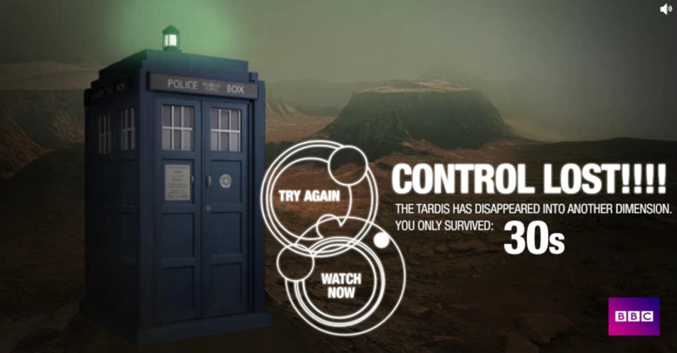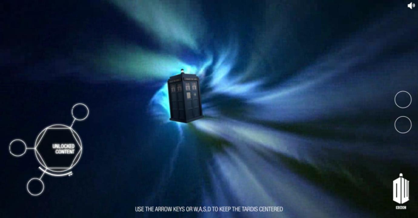We're probably crashing, so put your piloting skills to the test. Use your keyboard to fly the Tardis through the vortex to London, unlocking some clips along the way. This game is best played on a desktop computer. Just one question: do you happen to know how to fly this thing?