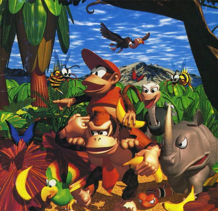 Donkey Kong Country is a side scrolling platformer by British developers Rare in 1994. It featured revolutionary pre-rendered 3D graphics that give the game a very unique look compared to most other games on consoles at the time. The two playable characters featured in the game are the titular character, Donkey Kong and his nephew, Diddy Kong. Together the two swing, climb, jump, swim, cartwheel, ride animals, and blast out of barrels on their way to recover their stolen bannanas from the evil King K. Rool and his Kremling army. The adventure takes you through a variety of different environments and levels that continually change up gameplay. Donkey Kong Country also provides plenty of opportunities for exploration with almost every level having a multitude of collectible, shortcuts, and hidden bonus areas.