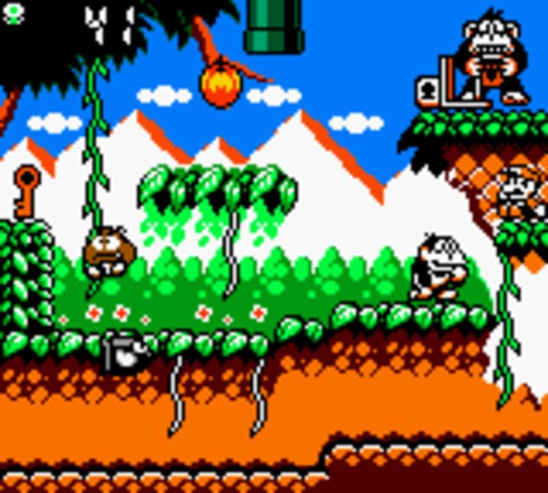DK's son must traverse various stages to free his dad. Goombas, Bullet Bills, and Baby Piranha Plants appear as enemies.