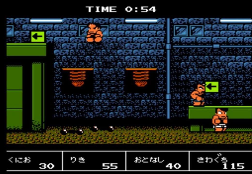 This prequel to the game known in the West as Crash'n the Boys: Street Challenge sees Kunio-kun competing in four not-so-traditional athletic events. The game was originally released as Downtown Nekketsu Koushinkyoku: Soreyuke Daiundoukai, but has since been localized as Downtown Nekketsu March Super-Awesome Field Day!