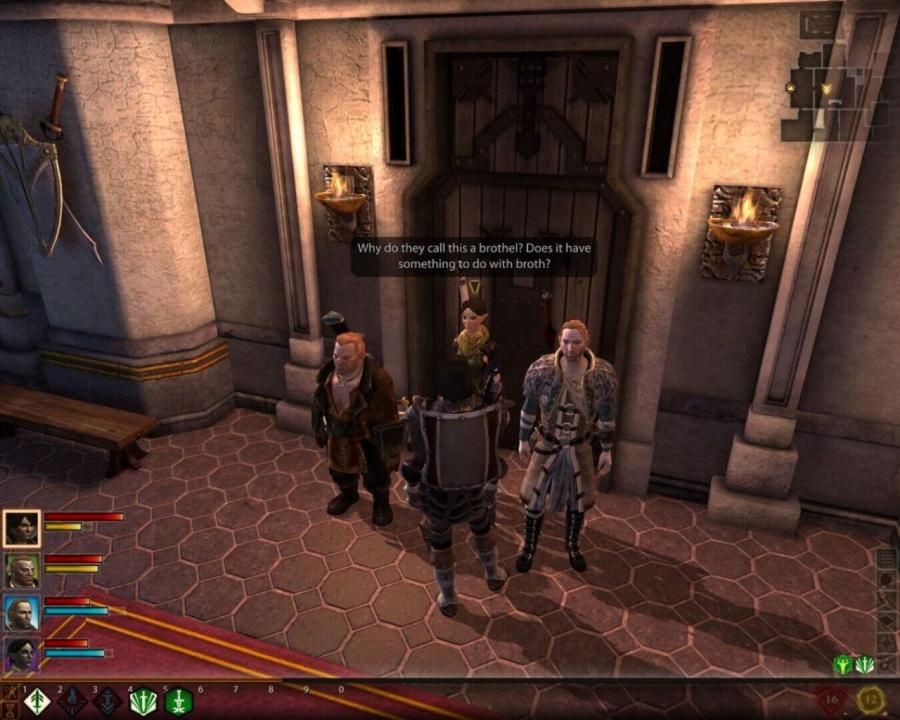 Dragon Age II is the sequel to Dragon Age: Origins and the second major game in the series. Like its predecessor, players can explore and engage in combat from a third-person perspective and will also encounter various companions who play major roles in the plot and gameplay. Depending on players' decisions and dialogue, a companion will either recognize the main character Hawke as a friend or a rival. The game adopts the wheel-based dialogue system, meaning short responses that reflect different tones and attitudes the player wishes to choose for Hawke. The combat system is quite similar to the one used in the previous Dragon Age game, though it has been noticeably sped up.