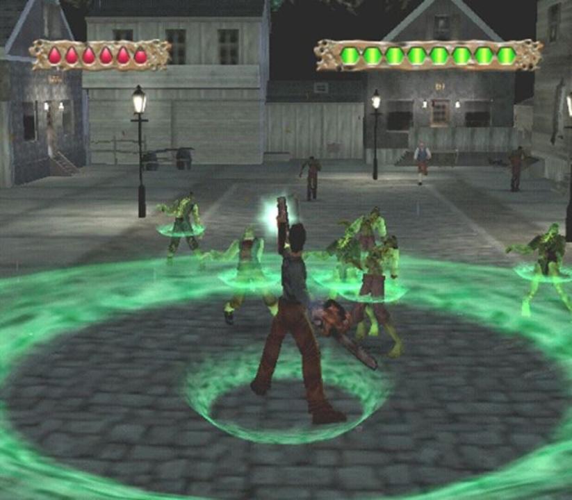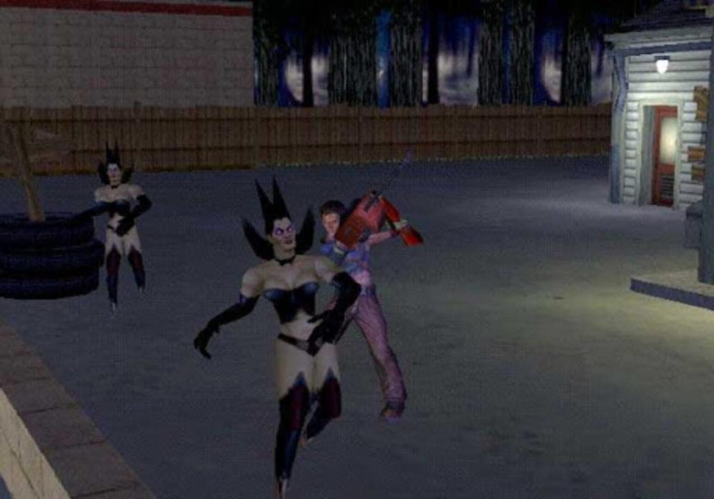The game begins three years after the events of "Hail to the King". Ash Williams is telling the story of his battles with the Necronomicon Ex-Mortis to an Asian man, and then starts to tell the story of how he ended up with the man in the first place through a series of flashbacks. Dearborn, Michigan: Last Night A special "Live" episode of Mysteries of the Occult starts at the local KLA2 television station (a reference to the movie The Day the Earth Stood Still; KLA2 is pronounced "Klaatu," the name of the protagonist.) Trisha Pettywood, a journalist out to expose the truth of the Necronomicon, is the host, with her guest, the parapsychologist and best-selling author Professor Alex Eldridge, a colleague of the late Professor Raymond Knowby, who has written a book based on the Necronomicon. Ash is sitting at his favorite bar in the red-light district, having a few drinks during the broadcast, and badmouths Eldridge, claiming that he wouldn't know the real Necronomicon from "a roll of extra-fluffy two-ply". The bartender, who apparently knows Ash, gives him a free drink, telling him that he is sorry about Jenny, a subject which is apparently still very painful for Ash. Trisha also mentions a local Dearborn man (namely Ash) who claims that the Necronomicon can raise the dead and interdimensionally travel through time, but Eldridge dismisses it as the sad, depraved ramblings of a lunatic, while also claiming that it is easy to get caught up in the book's mythology. Hearing this, a drunken Ash babbles on about his remark, and also about his fights with the Deadites and how he had to amputate his own right hand. Trisha has somehow obtained the tape recording of Professor Knowby, and plays it live as a "treat" to the viewers. Ash, knowing what will happen if they do so, shouts at them not to play it, but of course, they do not hear him. The Deadites are released into the world once more, and the Evil Force floats through town, right into the bar, and possesses the bartender who is promptly shot down by Ash who strangely has his boomstick with him.