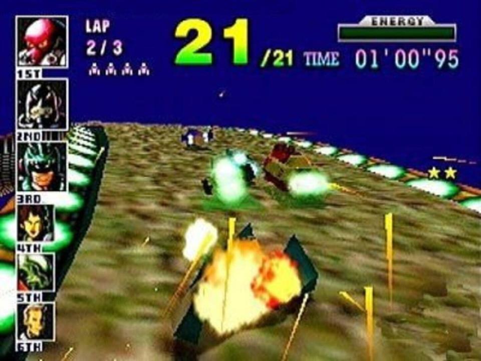 It's you against 29 other machines competing for the title of F-Zero X Champion. You're racing at speeds of over 1,000 km/h high above the atmosphere. Your competition comes from every corner of the galaxy and won't shed a tear at the thought of smashing you off the track. With four-player simultaneous gameplay and the Rumble Pak accessory, you have the fastest racing game on the N64 system!