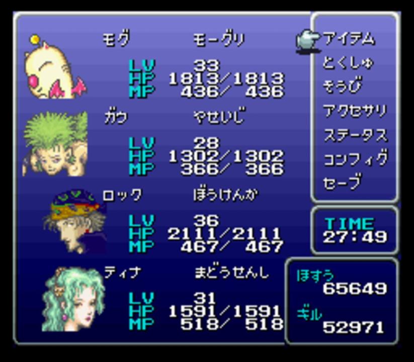 Final Fantasy III is the sixth main installment in the Final Fantasy series, developed and published by Square. It was the final title in the series to feature two-dimensional graphics, and the first story that did not revolve around crystals. The game gives players up to fourteen playable characters, the largest cast in the series, and features the Active Time Battle pseudo-turn based menu command system. A party can consist of up to four characters, though some events require the player to assemble three different parties of up to four and switch between them. Each character has a unique command ability, such as Terra's Trance, Locke's Steal, Edgar's Tools or Sabin's Blitz, and can also learn Magic spells from earning AP from battles with magicite equipped. Each character's rare Desperation Attack will randomly activate after using the Attack command when at critical health.