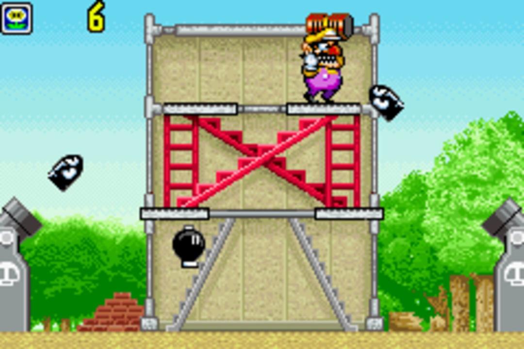 The Modern version of Fire Attack involves Wario, who is trying to protect a giant golden statue of himself from a bunch of Bob-ombs and Bullet Bills. During his defense, however, Wario has to be careful not to hit any hens or apples, as they award him five and seven bonus points, respectively. The player is not penalized for hitting a hen or apple, but the player does get a miss if a Bob-omb or Bullet Bill manages to destroy parts of Wario's fort. However, Wario can remove a miss when he gets 200, 500, and 700 points by catching a heart coming from a Bill Blaster. It is Game Over if Wario's statue gets destroyed. This version also features music, with the tempo changing depending on the speed of the game.