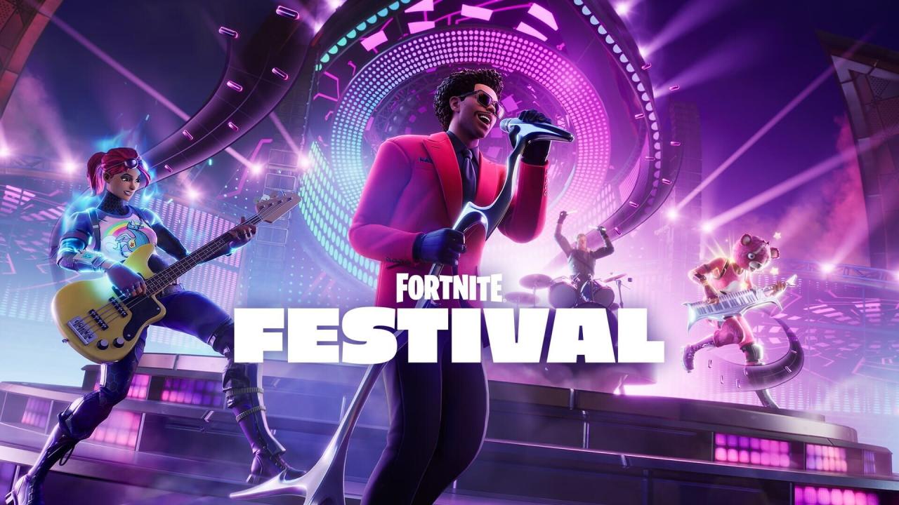 Play in a band with friends or perform solo on stage with hit music by your favorite artists in Fortnite Festival! On the Main Stage, play a featured rotation of Jam Tracks. Compete against friends for the best performance or team up to climb the leaderboards. The festival is just beginning with more Jam Tracks, Music Icons, concerts, and stages coming soon. Take your stage in Fortnite Festival!