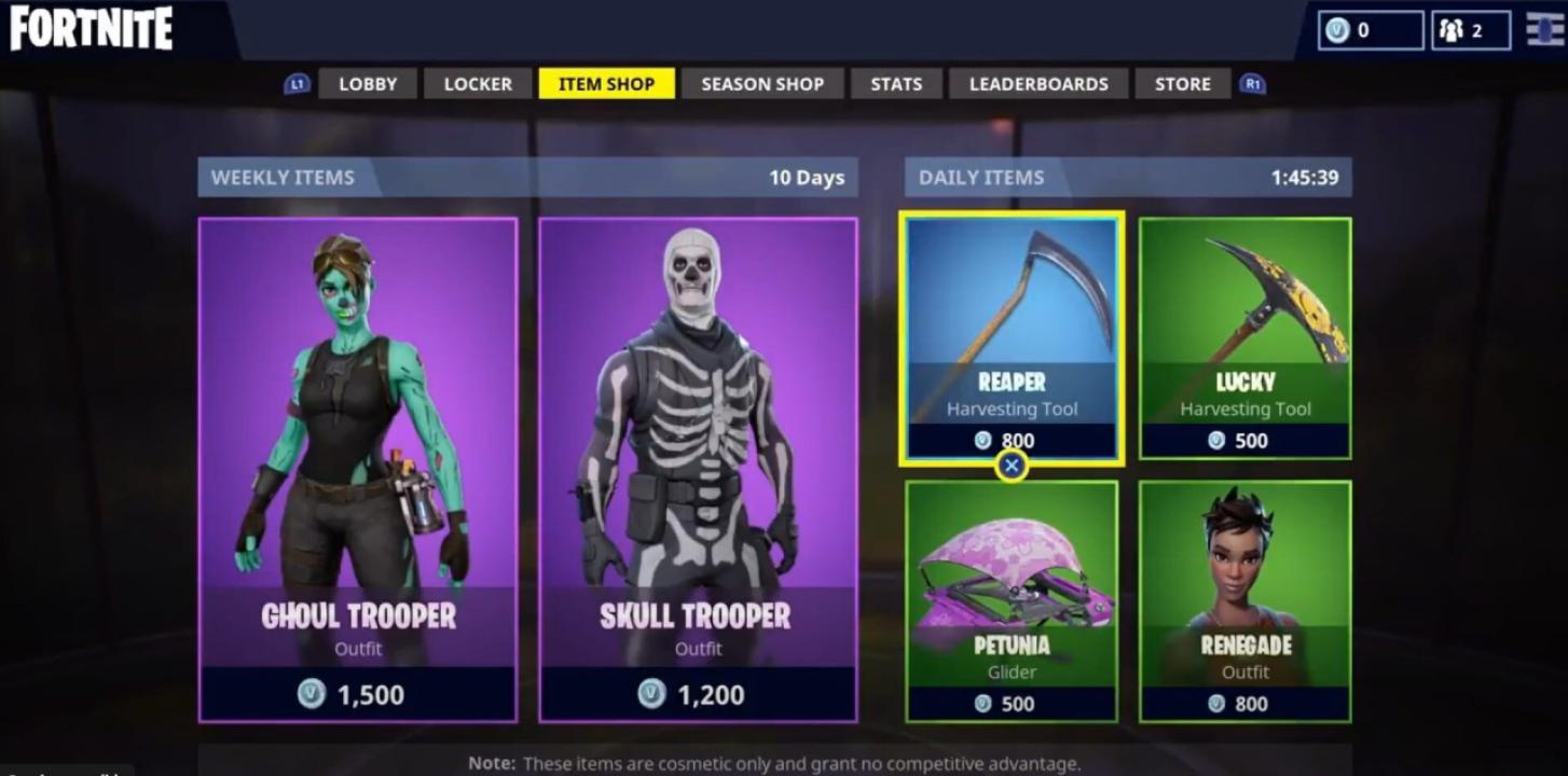 Season 1 was the first iteration of player progression in Battle Royale. Players could buy 4 Items in the Item Shop after earning enough XP. It started on October 26th 2017 and concluded on December 13th 2017.