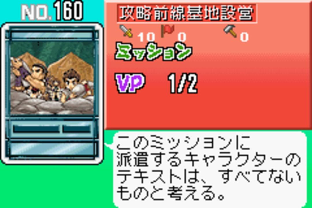 Set in the Suikoden universe, the game closely follows the story of Suikoden II. The hero is a young member of the Unicorn Brigade of the Highland Army. One night, your camp is attacked. You and your best friend Jowy escape, and the fate takes you into different directions, when you get involved in a war between several nations. Unlike the main Suikoden games, Gensō Suikoden Card Stories is a card-based RPG. Most of the game is spent playing a special card game with your opponents. The complex card game is not unlike a strategy battle: you have three types of cards, some of which take you to a specific "mission" (you open the game with such cards), while others represent various characters with different strengths and weaknesses. You can acquire cards in shops, get them from your opponents, and also look for them in randomly generated dungeons.