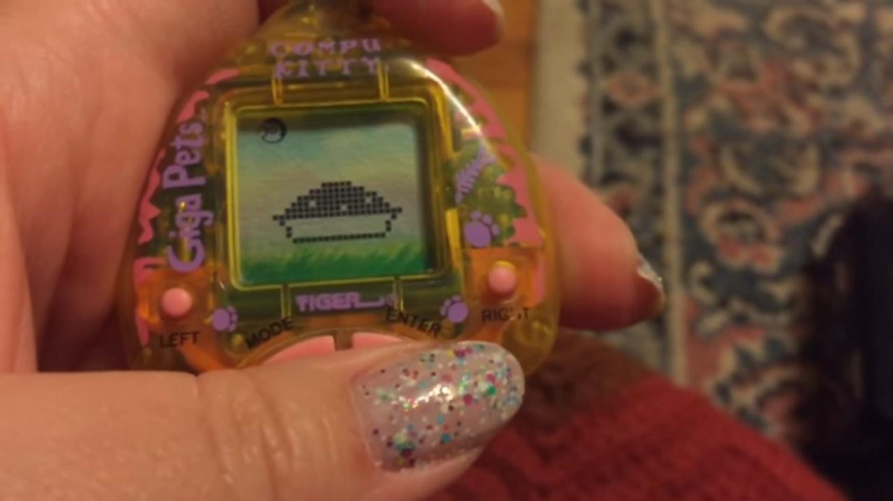 Giga Pets are digital pet toys. Available in a variety of different characters, each Giga Pet is a palm-sized unit with an LCD screen and attached key ring. To ensure a happy, healthy pet, its owner has to take care of it similar to how one might care for a real animal, including feeding, cleaning, and playing with their Giga Pet.
