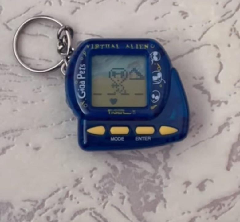 Giga Pets are digital pet toys. Available in a variety of different characters, each Giga Pet is a palm-sized unit with an LCD screen and attached key ring. To ensure a happy, healthy pet, its owner has to take care of it similar to how one might care for a real animal, including feeding, cleaning, and playing with their Giga Pet.