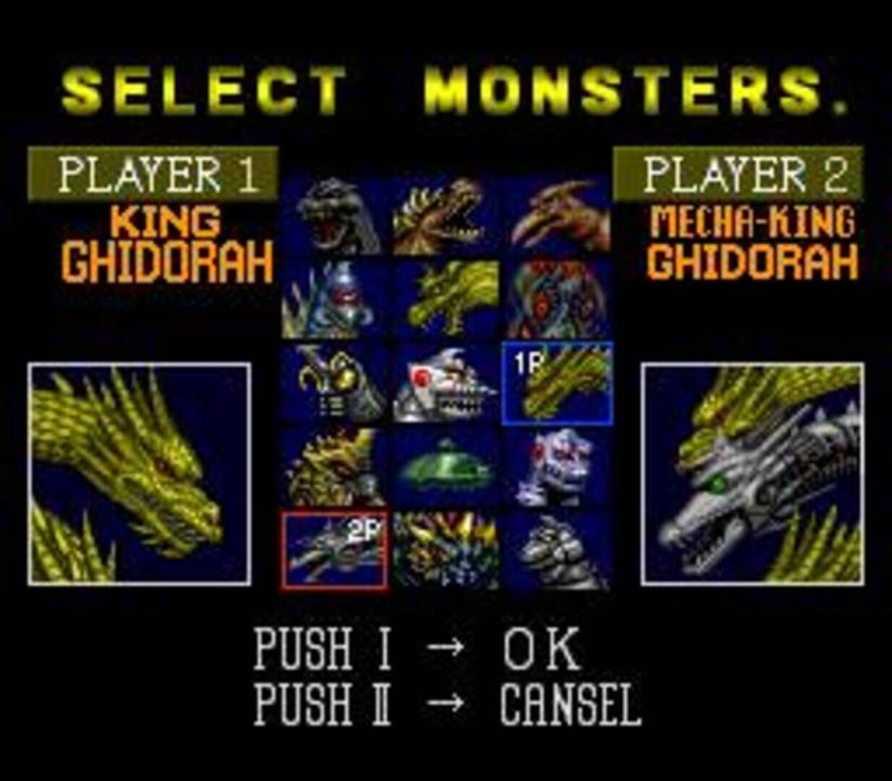 In Single Player Mode, the only playable character is Godzilla. Instead of choosing the foes for the player, each stage gives the player a choice between two foes. For instance, the first stage gives you a choice between Anguirus and Rodan. Each battle is based around the movie it was based off of. For instance, Anguirus' stage has Godzilla appear as he did in 1955, uses Godzilla's roars from that film, and takes place at the Osaka Castle grounds. When the player completes a stage, they are rewarded with a certain amount of points. The better the player does in the stage (defeating the enemy in a short amount of time, the amount of health they have left, etc), the higher the score they will receive. When the player has gotten to Stage 6, they are once again told to pick their opponent, but this time, the player has up to six choices for their opponent, the number depending on score. The Super X II is always available, Mechagodzilla 2 is unlocked at 450,000 points, Biollante's Final Form is unlocked at 500,000 points, Mecha-King Ghidorah is unlocked at 550,000 points, Battra's Imago form is unlocked at 600,000 points, and Super Mechagodzilla is unlocked at 650,000 points.