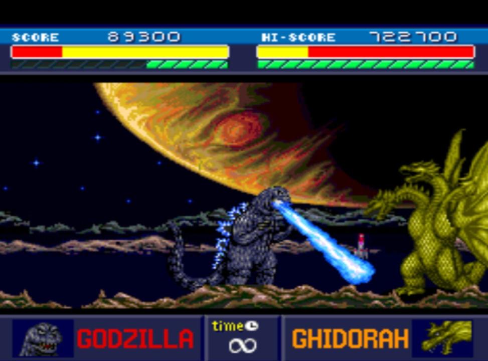 Godzilla: Battle Legends (simply referred to as "Godzilla" in North America) is a fighting game based on the Godzilla film franchise, made for the Turbo Duo in 1993, developed by Alfa System and published in the United States by Hudson Soft. When Godzilla fights a certain foe, his appearance changes to reflect the era when he battled in certain films. For example, Godzilla looks like as he did in 1955 when he fights Anguirus, and as in 1964 when he fights Rodan. This game's sequel, Godzilla: Monster War for the SNES, features fewer monsters, with the inclusion of Biollante as a playable character and Mothra. In single player mode, only Godzilla is playable.