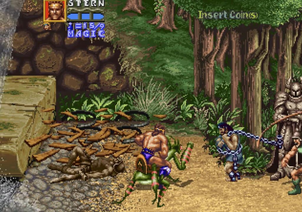 Golden Axe: The Revenge of Death Adder is a side-scrolling arcade hack 'n' slash game released in 1992 by Sega. It was the first 32-bit game in the series. It still remains an arcade exclusive as of 2010. The player characters are Goah the giant, Stern the barbarian, Dora the Kentauride, and Little Trix, a young elf lad who carries a pitchfork. None of the characters from the first game are playable, although Gilius Thunderhead from the first game rides on Goah's back. The main enemy is once again Death Adder.