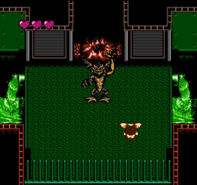 Gremlins 2: The New Batch ties in with the movie of the same name. Gizmo is trapped inside Clamp Centre by the evil Gremlins. It is up to the player to help him battle his way to the Control Center and rid the city forever of the Gremlin menace. This game is a side scrolling platform game. Gizmo can equip a variety of weapons from a pencil to a toolbox to use against different Gremlins and other vermin such as spiders, bats and rats. There are also traps that hurt Gizmo. Gizmo can be hit by an enemy or trap multiple times before he loses a life.