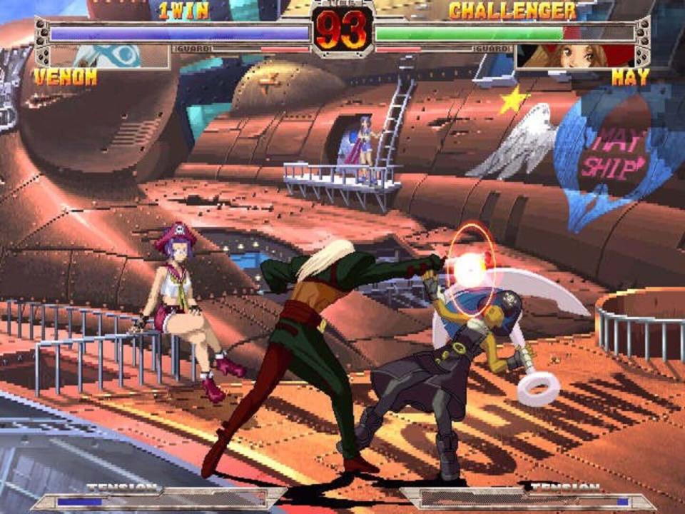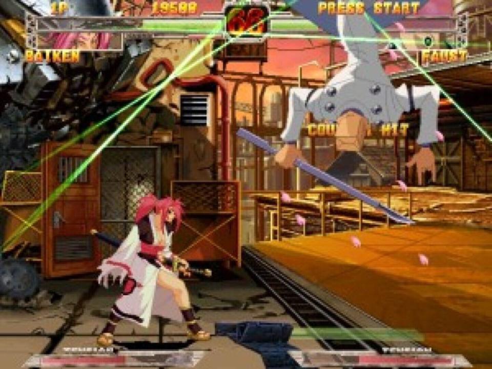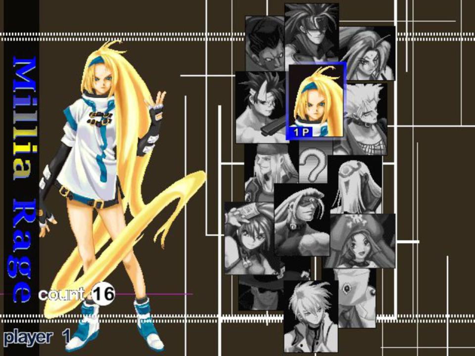 Guilty Gear X is the sequel to 1998's Guilty Gear, a 2D fighting game for the Sony PlayStation that became extremely popular in Japan. Featuring beautiful hand-drawn artwork and animation, as well as balanced, fun, high-energy gameplay, Guilty Gear X aspires to be the king of 2D fighters. The goal in Guilty Gear X is simple: get your opponent's Life Bar down to zero within the allotted time to win. Winning a round nets you a point; getting two points will win you the match. There are 14 different characters to choose from, each with their own personal style and moves. There might even be some hidden ones, too...