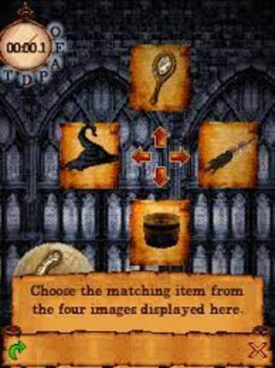 Harry Potter: Mastering Magic is a collection of mini games revolving around Potter's main activity at Hogwarts (yes, that would be studying). The game has an interesting wrap-up where you need to play for a whole school year and pass your final exams. The game consists of the following mini games: Astronomy - memory game (connect stars to replicate a star configuration) History of Magic - quiz (Potter trivia) Divination - visual recognition puzzle (an object is twisted in a crystal ball, the player must choose the right object out of several similar ones) Transfiguration - a Tangram variant Potions - memory game (count ingredients) Care of Magical Creatures - common sense puzzle (feed the Thestral the right food) Charms - word game (explore a grid of letters and form a spell) Herbology - logic puzzle (grow plants by casting the right spells)