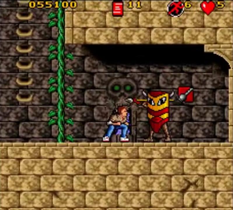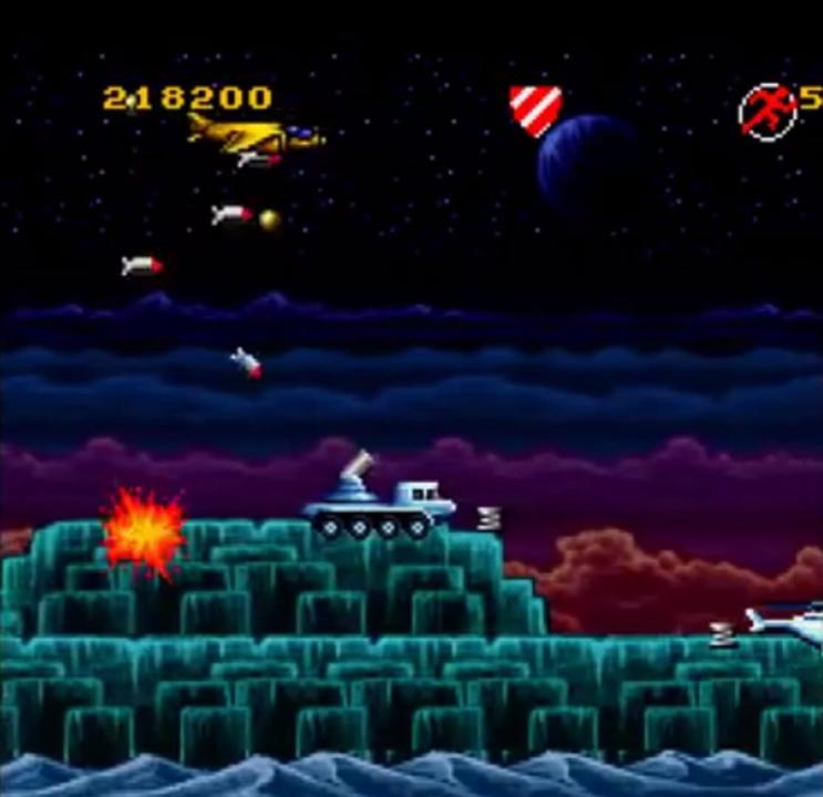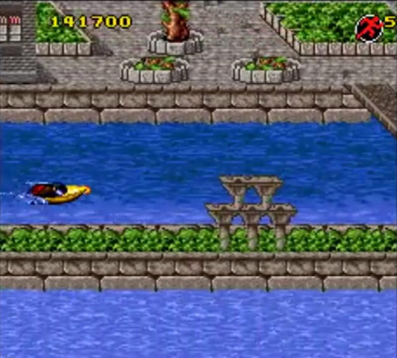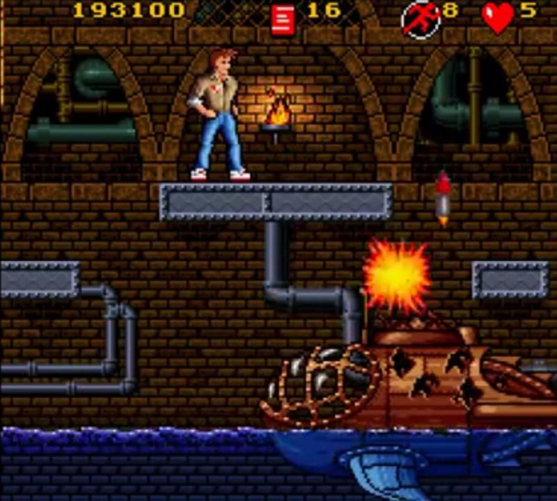 This adaptation of the animated TV series differs significantly from its NES namesake. The nephew of Agent 007 must foil the plans of malevolent S.C.U.M. agents, who are hunting for rare artifacts that would allow them to dominate the world. Unlike the NES game, this version is a more action-oriented side-scrolling game without detailed mission objectives or puzzle-solving. The game consists of three levels, each beginning with a section in which Bond pilots a helicopter, a boat, and a jet, respectively. These are controlled in arcade-like fashion, similarly to side-scrolling shooters. Enemies must be dealt with using weapons mounted on the craft. Various hazards are scattered through the stages, requiring the player to react quickly in order to stay alive.