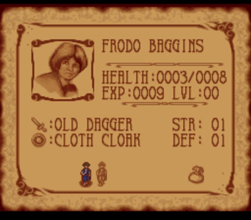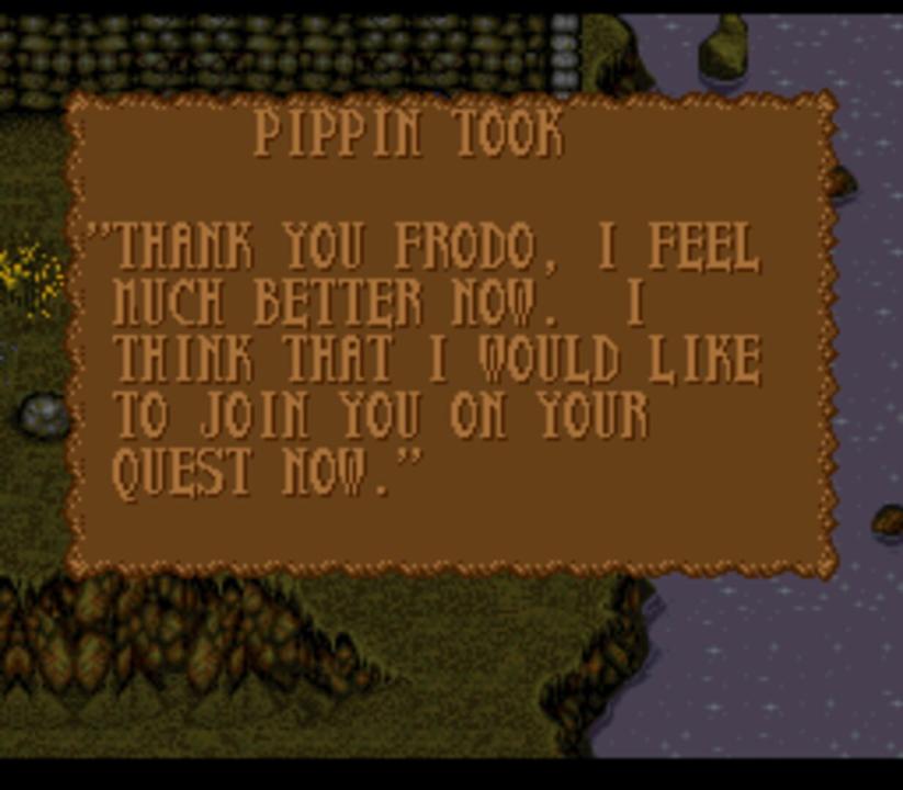 The player begins the game as Frodo Baggins, and progressively acquires the remaining members of the Fellowship; Samwise Gamgee, Peregrin Took, Meriadoc Brandybuck, Aragorn, Legolas, Gimli, and Gandalf (Boromir strangely only makes a single brief appearance). With the addition of extra controllers and the Super Multitap, the game supported more than four players. Players could play as Frodo, Samwise, Pippin, Merry, Gimli, and Aragorn. Using cheats or an emulator, players could also play as a non-combatant Legolas or Gandalf, supporting up to 8 players (although Legolas cannot do anything but move around and take damage). Any characters not controlled by the player(s) are controlled by the computer A.I.. The game progresses through a series of "fetch quests" in which the player must explore vast environments to retrieve items relevant to the game's story. These items are often simple trinkets that have been misplaced by the game's non-player characters (NPCs). Much like the book, the game begins in the Shire, the land of the Hobbits. The game's plot takes the player to various locations from the book, such as the village of Bree, the elven city of Rivendell, and the Mines of Moria. Unlike the book, however, the finale of the game is the fight between the Fellowship and the Balrog creature in the Mines of Moria (the first volume of the book ends significantly later). If a character dies, the death is permanent and the player cannot use them for the rest of the game. The sequel, The Lord of the Rings: Volume II, was meant to pick up where Part I left off, but due to poor sales, no sequel was ever released on the Super Nintendo Entertainment System.