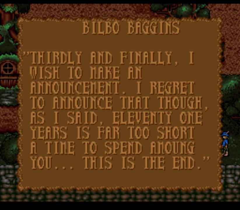 An action role-playing game produced by Interplay Productions for the Super Nintendo Entertainment System. It is an adaptation of The Fellowship of the Ring by J. R. R. Tolkien.