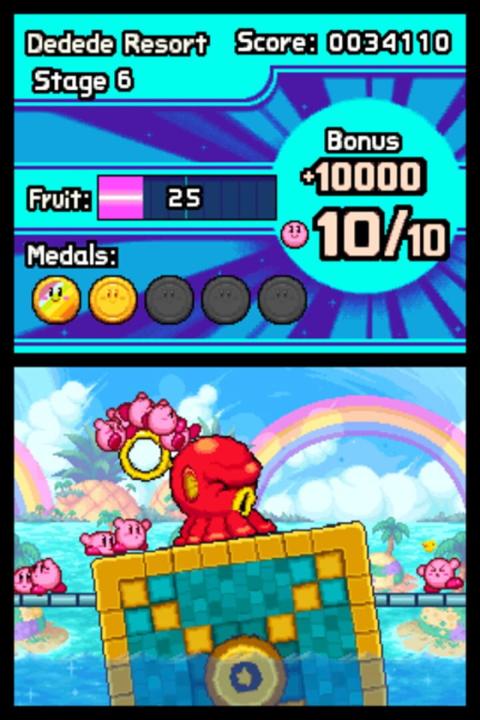 One day, an evildoer with a magic cane appears and splits Kirby into 10 pieces. Kirby sets off on a journey to return to his original form. Players use the touch screen to control a mass of Kirby characters in a new and novel way. Swipe the touch screen to launch them in a mass attack against enemies, then tap the enemies into submission.