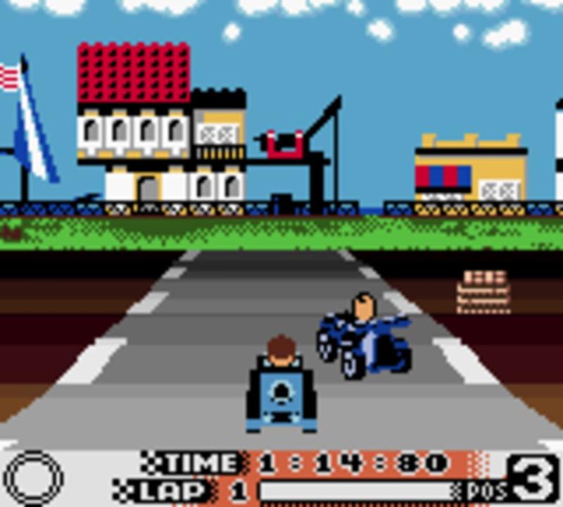 Game Boy Color port of the racing game based on the popular LEGO toys, this game allows the player to construct a character and car (limited to three pieces in this version) to take on all of the champions of the LEGO world, eventually facing off with the greatest of them all, Rocket Racer. You race on tracks based off of various LEGO themes across many circuits. The game also includes a multiplayer mode for link play.