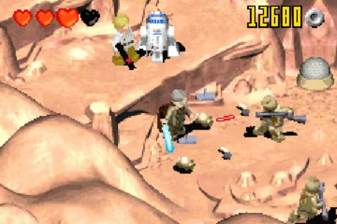 LEGO Star Wars II: The Original Trilogy takes the fun and endless customization of LEGO and combines it with the epic story, characters and action from the original Star Wars movies that revolutionized pop culture forever (Episode IV A New Hope, Episode V The Empire Strikes Back and Episode VI Return of the Jedi). With a unique tongue-in-cheek take on the Original Trilogy, LEGO Star Wars II follows the Rebel Alliances crusade to dismantle the Galactic Empire and rebuild a galaxy in pieces. The GBA release, developed by Amaze Entertainment for TT Games, has a different graphic style and changes some levels by rearranging, merging or removing them. There are only 36 playable characters, some unique to this version, with some changes to when some are unlocked throughout the story. There are also no power bricks in the game with the related extras available for purchase separately.