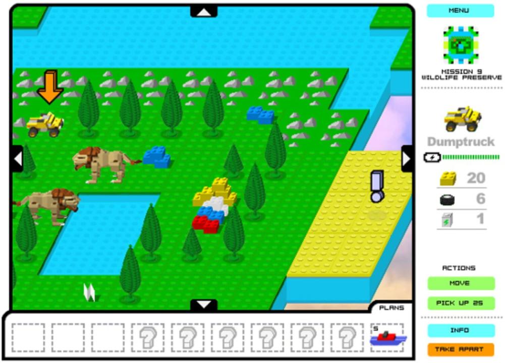 World Builder is a Shockwave puzzle-platformer that was hosted on the official LEGO website in 2002. The player must collect LEGO pieces and the recipes that allow them to assemble those pieces into different kinds of units and vehicles. Each unit type has its own capabilities, allowing the player access new areas and collect more pieces and recipes.